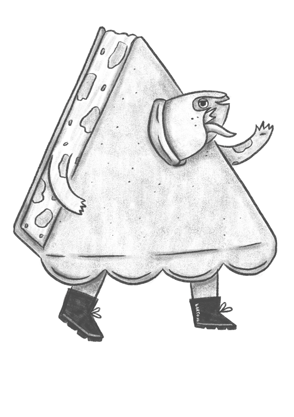 I was inspired to create him by finding a picture of the weirdest-looking pie I’ve ever seen; the Stargazy Pie (such a cool name, right?). I thought, well if I’m going to draw sentient pies, one of them has to have a fish’s head. And so Gideon Stargazy was born! Though after a few tweaks, he ended up losing his fish head and upgrading to a lobster instead. I was finding it hard to take his lips seriously.